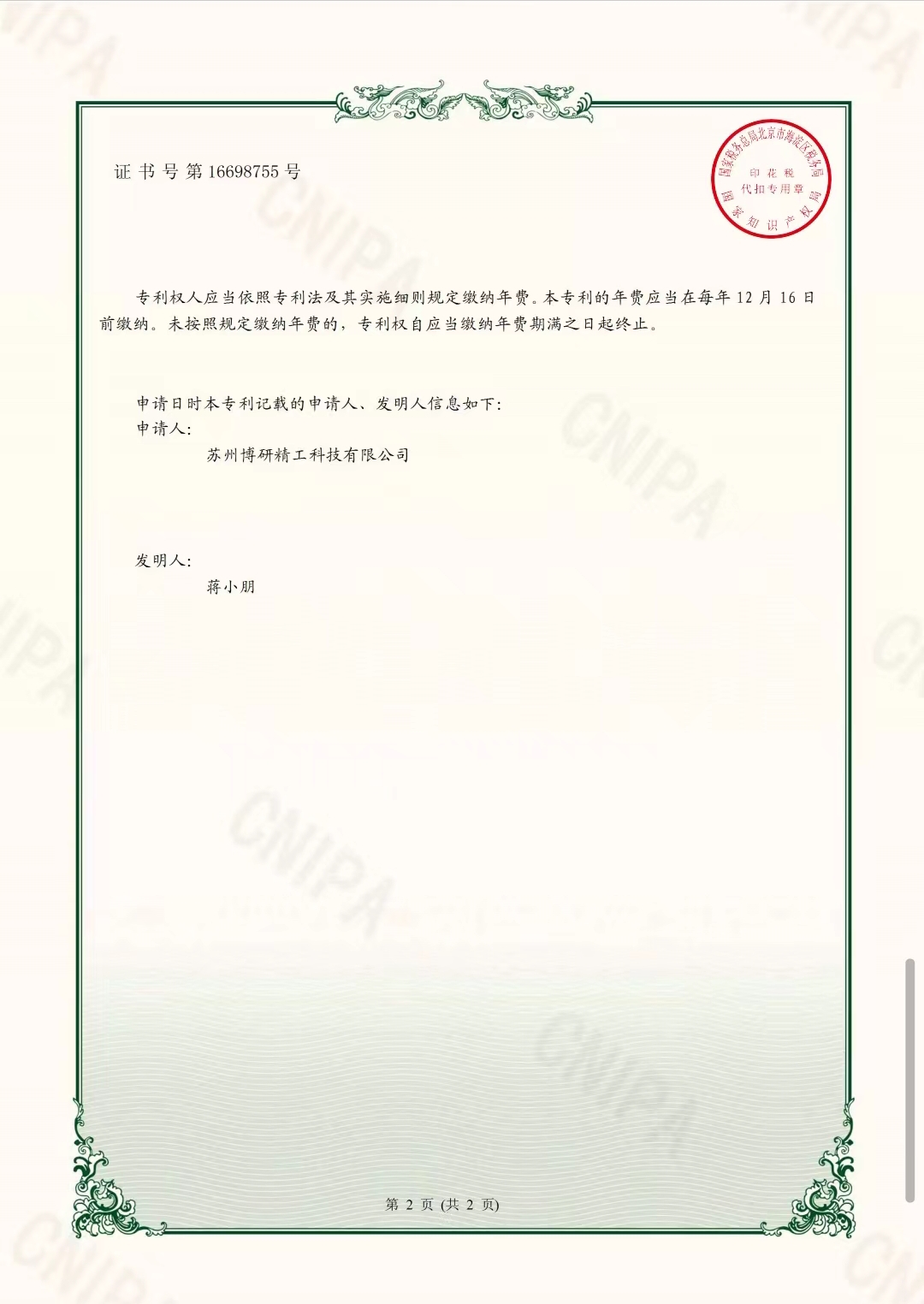 专利证书