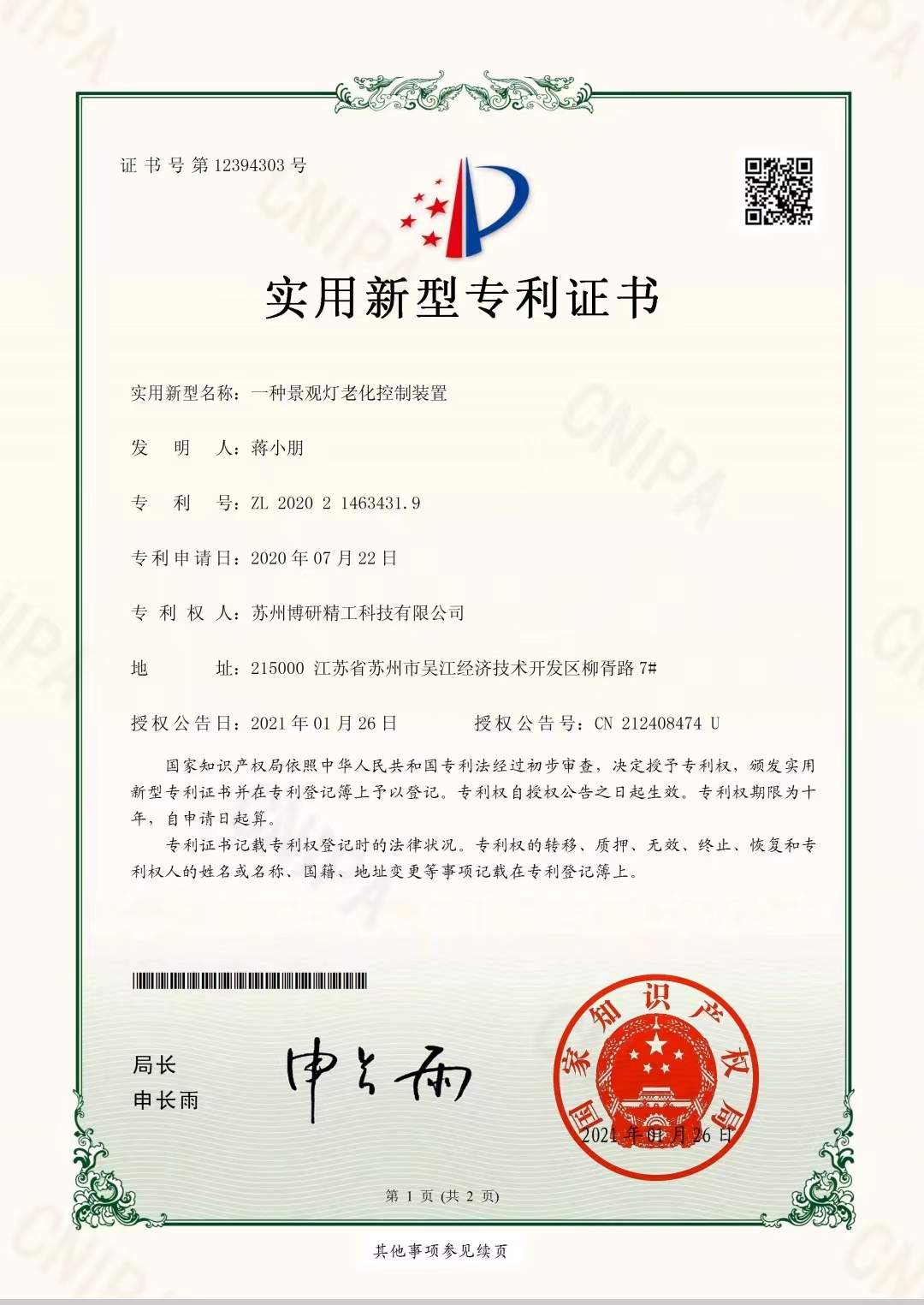 专利证书